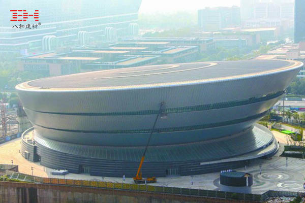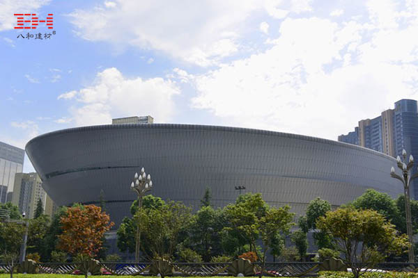 成都演藝中心是一個演藝兼體育賽事的綜合場館,為了達到良好的隔音、隔熱、防火功能,外立面采用了兩萬多塊鋁蜂窩板。