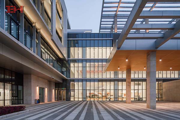 合肥京東方醫(yī)院的設(shè)計(jì)風(fēng)格簡(jiǎn)約且明確,外裝飾面采用了3mm厚氟碳鋁單板,建筑整體與立面造型以簡(jiǎn)潔干凈,高科技感強(qiáng)烈的線條為主。