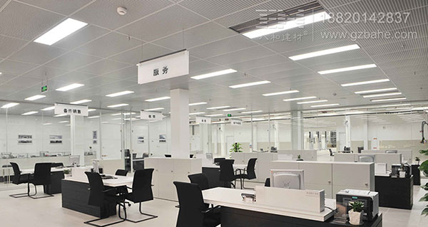東莞世奧奧迪4S店內(nèi)天花吊頂裝修,使用了1200*300mm的勾搭式?jīng)_孔鋁天花吊頂,銀灰色的色彩,與室內(nèi)空間完美融合。勾搭式?jīng)_孔鋁天花吊頂,背部有消音棉,防潮阻燃的效果,很適合安裝在休息室,讓空間沒(méi)有太多的雜音。