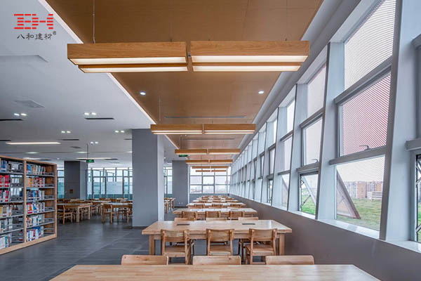 仿木紋鋁單板逼真的天然木材視覺效果和立體木紋觸感效果,有著極高的美觀性的同時,還具備防火、防潮、防腐等功能,在耐候性、硬度、強(qiáng)度上都比實(shí)木優(yōu)異。木紋鋁板營造的暖色調(diào)的室內(nèi)環(huán)境,配合簡明通達(dá),開放通透的采光和通風(fēng),突出空間的交流和公共性,營造濃厚的學(xué)習(xí)氛圍。