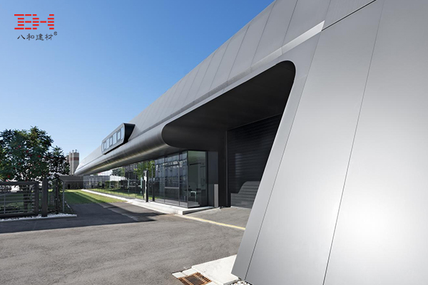 工廠立面純黑色的大塊弧形鋁單板,得體大方,弧度優(yōu)雅略帶光澤。其潔凈的外觀使得這個(gè)工廠更像是一個(gè)體面的研究中心,或是無塵車間,這對(duì)客戶的印象特別好,這表明這是一個(gè)值得信賴的理想工廠。