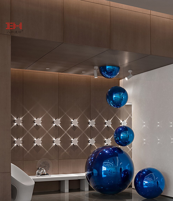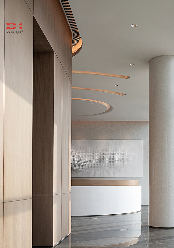 - 淮安鉑爾曼酒店大堂背景墻,用PVC覆膜鋁方通塑造的藝術(shù)造型