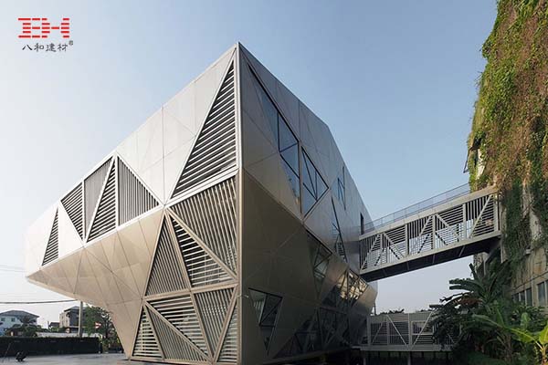 泰國Bitwise總部辦公樓是一棟有著幾何外觀結(jié)構(gòu)藝術(shù)性辦公樓,其外墻采用鋁單板和鋁百葉進(jìn)行裝飾,與鋼桁架結(jié)構(gòu)一起構(gòu)建出藝術(shù)性的幾何建筑體和外表。