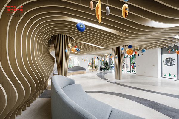 案例欣賞:木紋弧形鋁方通創(chuàng)建幼兒園藝術(shù)天花