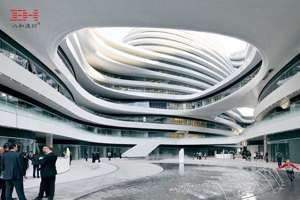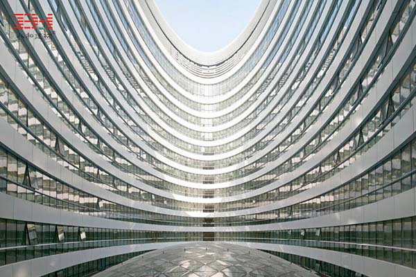北京銀河soho位于北京東二環(huán)朝陽門橋西南角,建筑面積33平方米,鋁板應用面積近9萬平方米,其先進的高性能幕墻系統(tǒng)堪稱業(yè)界典范,各種單曲面鋁單板、雙曲鋁單板、造型鋁單板的使用在這里發(fā)揮得淋漓盡致。