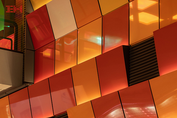 幕墻鋁單板采用不同顏色氟碳漆,再按顏色進行排列,藝術(shù)性地設(shè)計成像素化的立面,同時,一塊塊幕墻鋁單板朝著不同方向肆意突出,在陽光照耀下閃閃發(fā)光,夜晚更是在燈光映襯下色彩鮮艷。卡通色彩的外立面,加上幾個大型卡通玩偶形象,構(gòu)成了商場充滿趣味活力的娛樂性外觀,十分符合香港的城市肌理和形象。