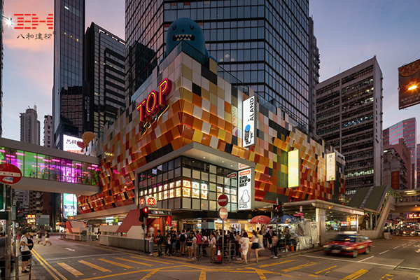 香港T.O.P This is Our Place 商場,建筑面積11.4㎡,集辦公商業(yè)娛樂于一體,改造后的商場外立面,是由色彩繽紛的幕墻鋁單板裝飾的外墻,充滿著娛樂趣味,光彩奪目,融洽于街道肌理。