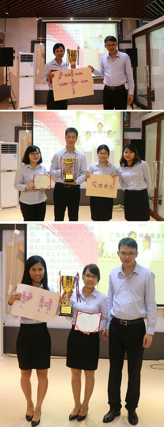在生活或者工作中,我們都要向優(yōu)秀的人學(xué)習(xí)。在八和建材這個(gè)大家庭里,對(duì)表現(xiàn)優(yōu)秀的人和團(tuán)隊(duì)給予獎(jiǎng)勵(lì)。祝賀這些獲獎(jiǎng)的家人,這是對(duì)他們工作的認(rèn)可和鼓勵(lì),同時(shí)也激勵(lì)其他家人努力去爭(zhēng)取這份榮耀。
