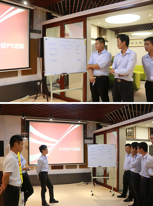 又到了PK環(huán)節(jié),八和建材的小伙伴們都勇躍的加入這個(gè)PK中。有個(gè)人之間的PK,有團(tuán)隊(duì)之間的PK,PK圍繞自己所制定的目標(biāo)進(jìn)行,其他人可以為所支持的個(gè)人和團(tuán)隊(duì)投注加油哦!