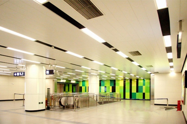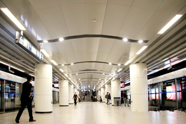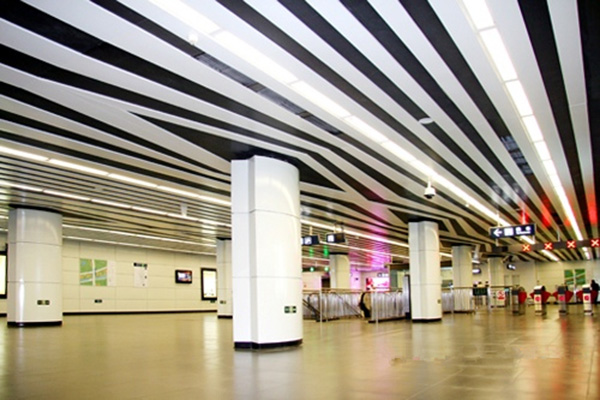 北京地鐵10號線是北京奧運(yùn)交通的重要組成部分,整條線路由西北至東南呈倒“L”形,全長32.9公里,共設(shè)車站28座,分兩期建設(shè)完成。作為城市中一道靚麗的風(fēng)景線,10號線一期在裝修設(shè)計(jì)上突出“都市前沿(Metro Frontier)”的理念,意在打造地鐵網(wǎng)絡(luò)中最具現(xiàn)代感、國際感,體現(xiàn)新北京風(fēng)貌的系列空間。如國貿(mào)站,強(qiáng)調(diào)站廳、站臺(tái)、通道空間天花部分的曲面構(gòu)成,以弱化空間寬度有限帶來的壓抑感,并使國貿(mào)站富有強(qiáng)烈的交通空間流動(dòng)性特征。10號線的內(nèi)部裝飾共應(yīng)用金屬吊頂產(chǎn)品約38000平方米,其中與奧運(yùn)支線的換乘站—北土城站為有史以來最大的單體車站。