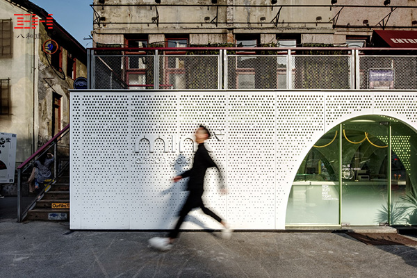 鋁單板、穿孔鋁單板用于店鋪門頭裝飾一直是各大商場品牌店裝飾的潮流,這次,重慶TESTBED2二廠文創(chuàng)園內(nèi),一家叫“Mint冰激凌店”的甜品店,用穿孔鋁單板打造了其文藝范的店鋪外立面。