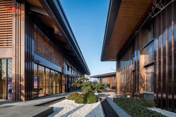 仿木紋鋁方通、仿木紋鋁板在中式院落建筑上的應用—合肥金科·半島壹號