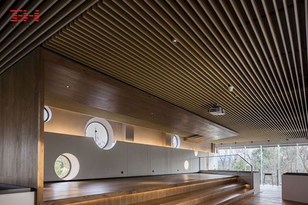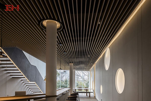 仿木紋鋁方通裝飾的辦公休閑空間天花吊頂