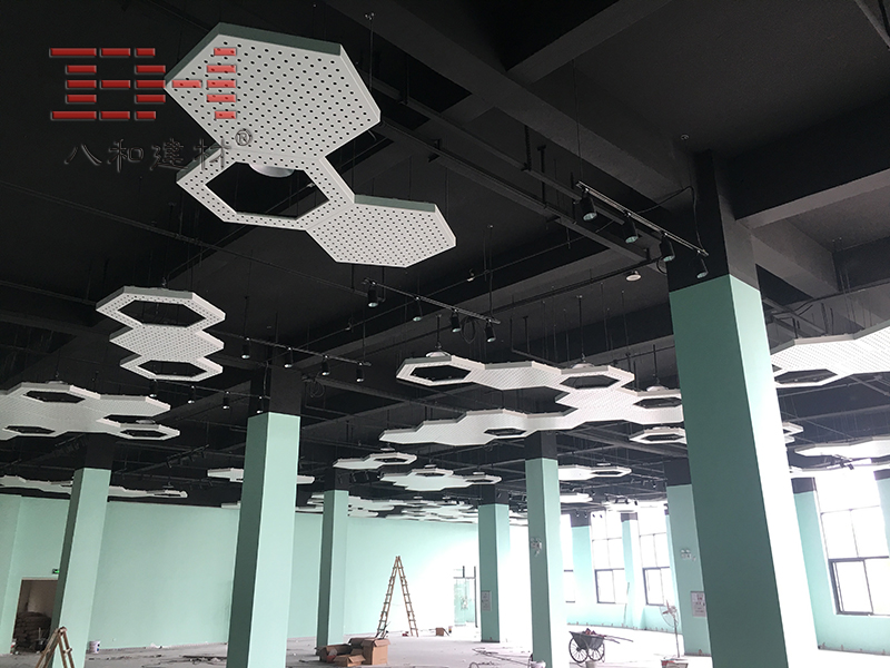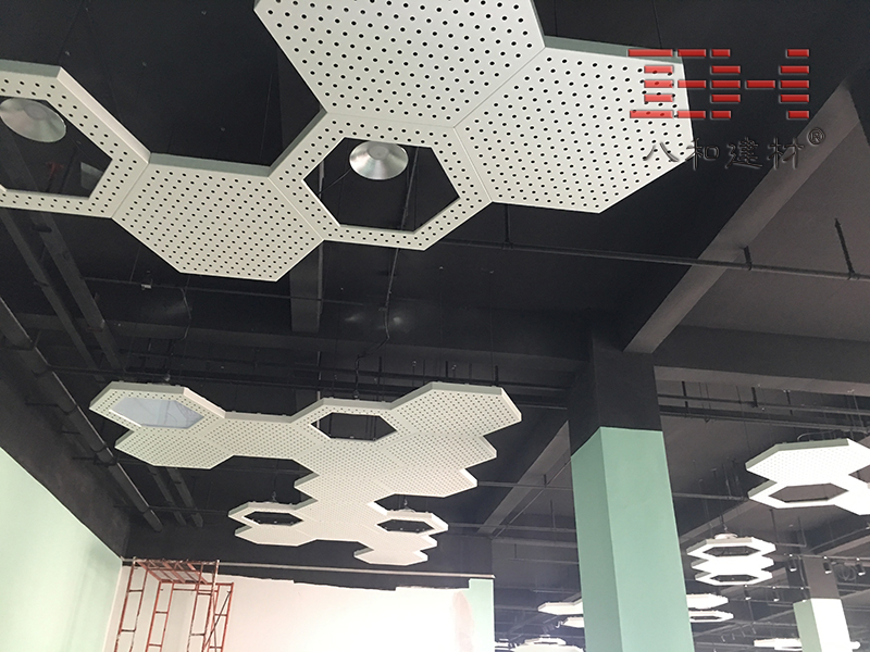 穿孔六邊形鋁天花吊頂,是八和建材近期為佛山生物醫(yī)藥展示廳設(shè)計(jì)生產(chǎn)的一款“非主流”天花吊頂。