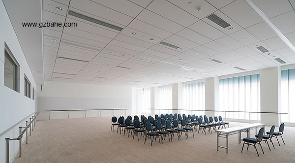 吊頂方形扣板天花板面平整,棱線分明,拼縫細(xì)密,吊頂系統(tǒng)體現(xiàn)出整體、大方、富貴高雅、視野開闊的外觀效果。暗架方板天花具有阻燃、防腐、防潮的優(yōu)點(diǎn),而且裝拆方便,每件板均可獨(dú)立拆裝,方便施工和維護(hù)。如需調(diào)換和清潔吊頂板時(shí),可用磁性吸盤或?qū)S貌鸢迤骺焖偃“澹部稍诖┛装灞趁娓布右粚游裘藜埢蚝谏枞济薏?,能夠達(dá)到一定的吸音效果。