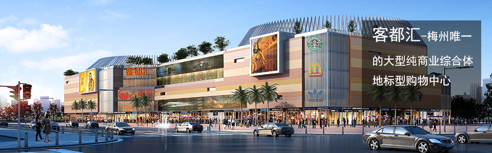 梅州客都匯商業(yè)文化廣場(chǎng),坐落于梅江河畔,毗鄰歸讀公園,地處江南路與梅水路交匯處,是梅州唯一的大型單體純商業(yè)綜合體、地標(biāo)型購物中心。客都匯汲取客家傳統(tǒng)圍龍屋建筑元素,古樸與時(shí)尚有機(jī)融合、相得益彰,匯聚逾百家中高檔時(shí)尚品牌,包括大型生活超市大潤發(fā)、橫店影視、K沙龍(時(shí)尚KTV)、一線珠寶首飾品牌、麥當(dāng)勞、國美、萬寧等主力店;集購物、休閑、餐飲、娛樂、文化等多功能服務(wù)于一體一站式超大型城市商業(yè)購物中心。