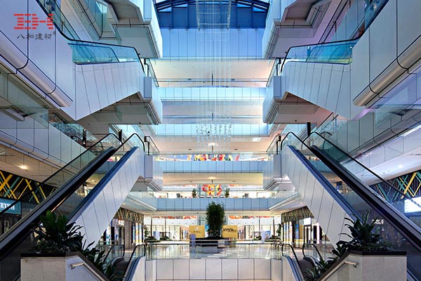 廣州財(cái)富天地廣場由中央廣場加四棟獨(dú)立場館組成,廣場內(nèi)五個(gè)中庭均設(shè)置了扶梯和護(hù)欄,采用了典型的購物中心中庭護(hù)欄鋁單板和購物中心扶梯鋁單板裝飾。