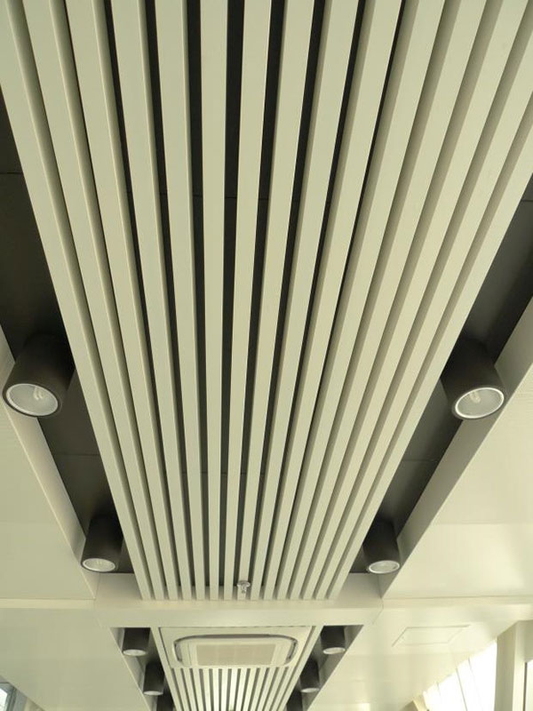 上圖為50*100mm白色鋁方通,位于過道天花中間,有導(dǎo)向性視感。