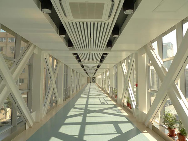 中國醫(yī)科大學(xué)附屬第一醫(yī)院走廊過道使用鋁方通、鋁單板、沖孔鋁單板、鋁扣板組合式天花吊頂,整個(gè)鋁天花采用白色聚酯噴粉,讓過道看起來更加明亮,寬敞。