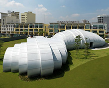 吉隆坡the Pod展館是用于開發(fā)商銷售和展示其地產(chǎn)項目之用。作為這一領域具有里程碑意義,開發(fā)商希望舉辦他的現(xiàn)場辦事處和銷售的標志性展館,在一個能反映精神和建筑風格的整體發(fā)展的展館和陳列室。展館的形態(tài)靈感源于自然界的水滴,外部猶如一節(jié)節(jié)的橢圓節(jié)連接而成。展館分為兩個部分,第一部分用作辦公,另一部分展示產(chǎn)品。外部由鋁合金板覆蓋,其弧形的幕墻保證了建筑的裝飾效果。