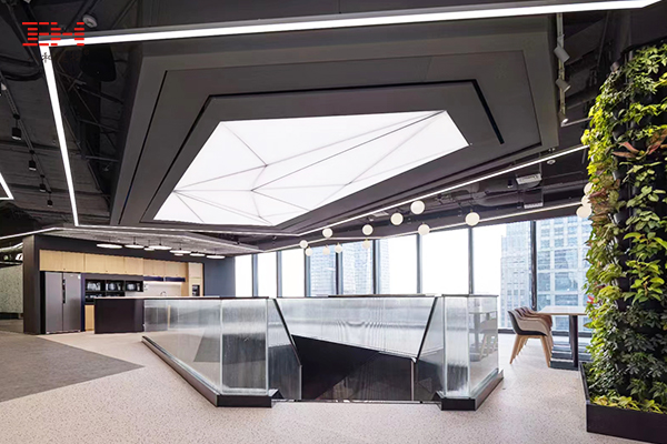 造型金屬拉伸網(wǎng)吊頂美觀大方,給人強(qiáng)烈的視覺(jué)沖擊,經(jīng)過(guò)與燈盒以及鋁方通的搭配設(shè)計(jì)提供不同的光學(xué)效果。對(duì)于寫(xiě)字樓、辦公室裝飾有極大的提升。