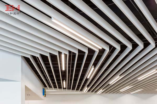 其他區(qū)域的型材鋁方通天花與鋁單板吊頂亦有異曲同工之妙,條形的線(xiàn)條裝飾、連接著各個(gè)區(qū)域,猶如導(dǎo)引線(xiàn)一樣帶你走進(jìn)富有創(chuàng)造性的空間。