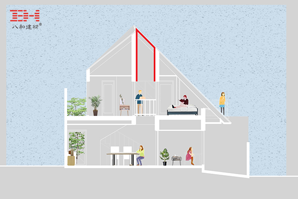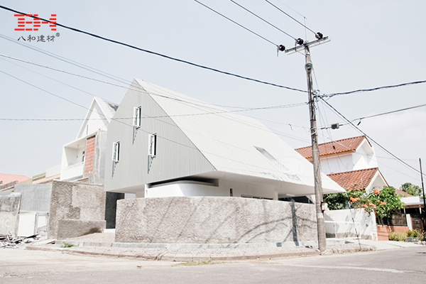 該建筑面積為180的小戶(hù)型,墻體主要由輕質(zhì)混凝土構(gòu)成,屋頂是鋁合金板。