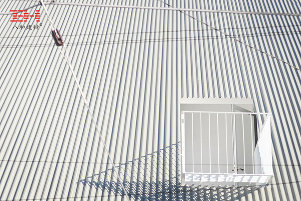 設(shè)計(jì)師用淺灰色的鋁合金板打造屋頂,是一個(gè)很巧妙的設(shè)計(jì)。一來(lái),鋁合金板具有良好的抗腐蝕性,能很好地保護(hù)混泥土墻體并延長(zhǎng)建筑的使用壽命;二來(lái),淺灰色的鋁合金板與灰色的混泥土屬于同一色系,配色和諧,能為建筑外觀(guān)帶來(lái)輕盈的感覺(jué)。
