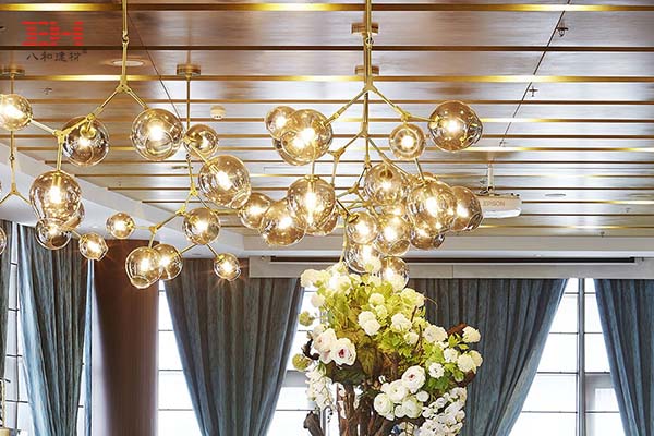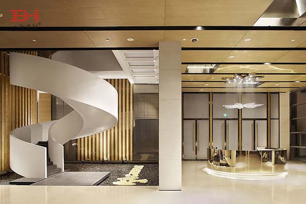 - 淮安鉑爾曼酒店大堂背景墻,用PVC覆膜鋁方通塑造的藝術(shù)造型