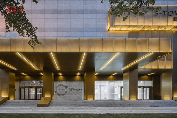 一系列的設(shè)計(jì)策略包括:使用更為現(xiàn)代的色彩及材料,讓建筑穿上一層金屬材料銅色金屬羽衣(穿孔鋁單板),金屬詮釋寶鋼的新活力,重塑商務(wù)美學(xué),用從過(guò)去沉重的鋼,到如今輕盈靈動(dòng)的“鋼”,從保守蛻變到開(kāi)放,暗喻寶鋼強(qiáng)勁的創(chuàng)新力。