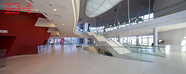 波蘭克拉科夫會展中心設計基于四個重要因素為考量,第一個是通過東側多層門廳的布局創(chuàng)建欣賞場地全景的絕佳場所;其次是打破場地的局限性,特別是角落位的用地,對其進行創(chuàng)造性再利用;第三是關注三個主廳的空間設計,尊重其投資方攝像的功能需求和觀眾座席數量;最后是立面和屋頂的設計,建筑墻壁使用了玻璃、陶瓷和氟碳鋁單板,屋頂也使用了鋁單板幕墻產品,這些鋁單板產品使得整個屋面的線條更具有動感,幾種材料還無違合的組合在一起。