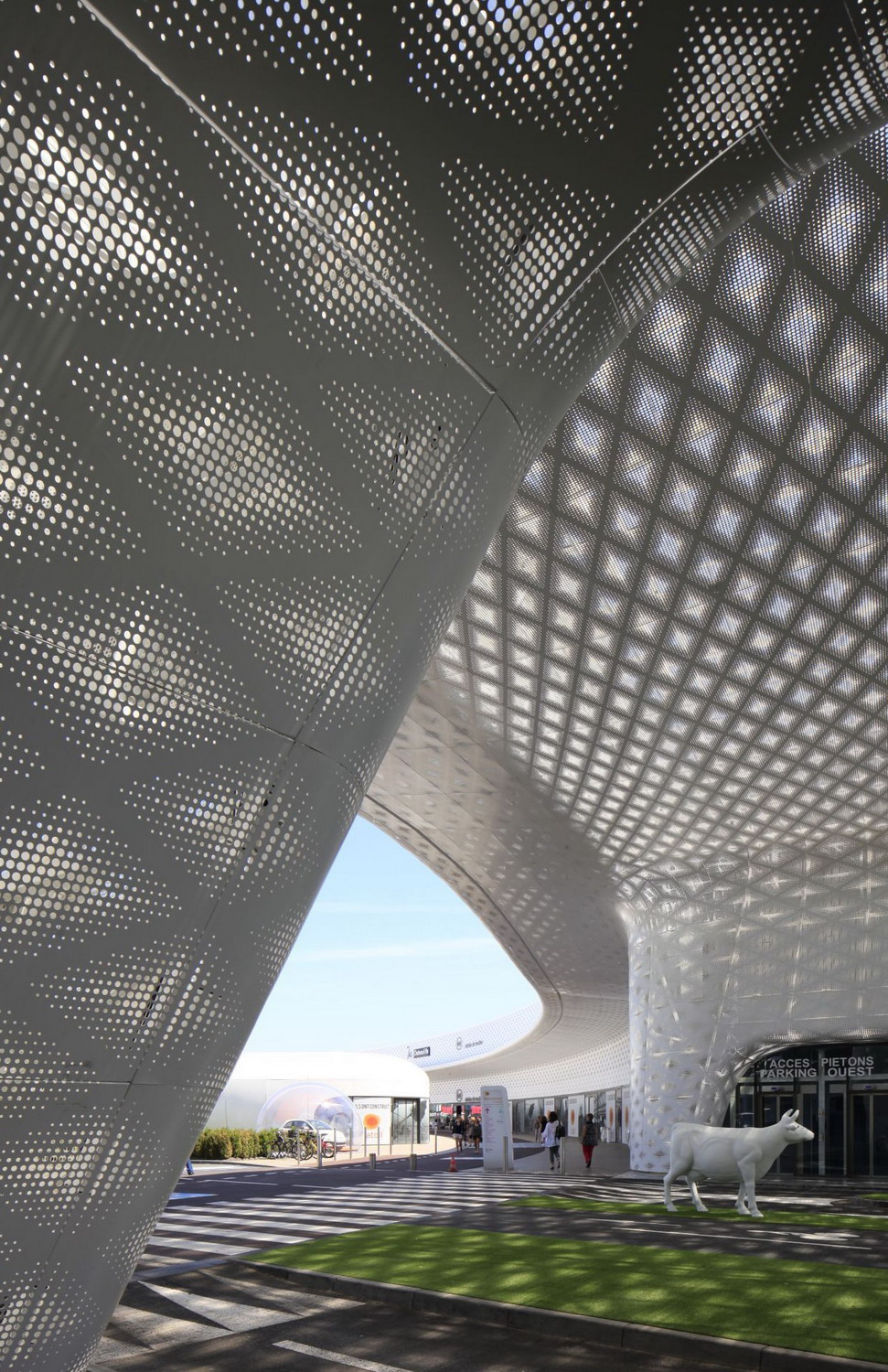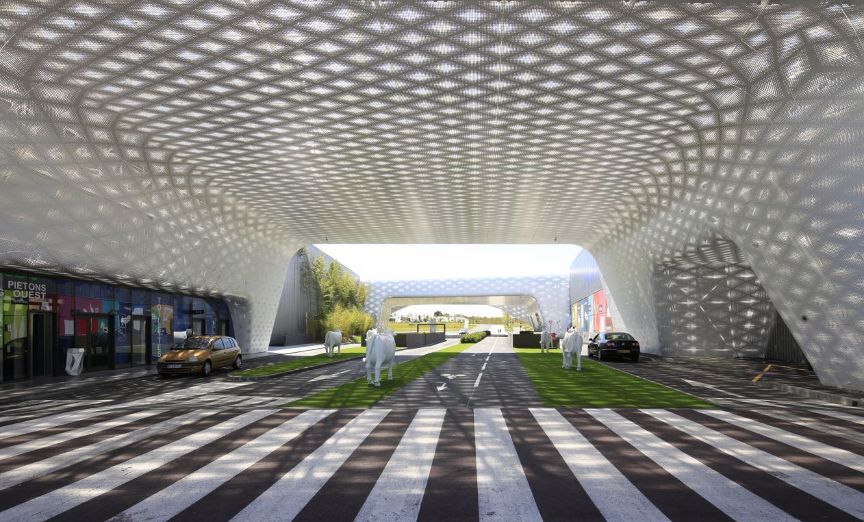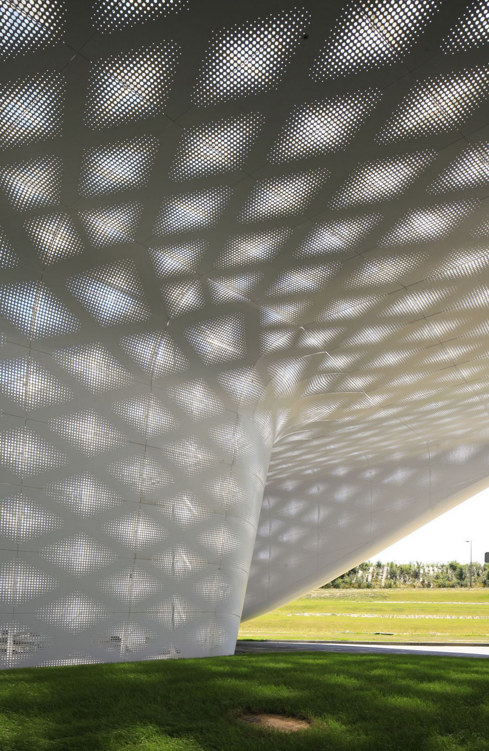 L’Atoll Angers購物中心四端由4個(gè)大型走廊隔開,就像四個(gè)入口。建筑覆蓋著大型穿孔鋁網(wǎng)材料,帶有背光燈。建筑外殼離主結(jié)構(gòu)8到12米遠(yuǎn),保護(hù)著后面的商店,讓這些商店進(jìn)行的運(yùn)輸遠(yuǎn)離Atoll中心行走的客人們的視線,為安全服務(wù)提供了一個(gè)自由通道。覆蓋殼從里向外,延著走廊向屋頂延伸開來,為走廊形成了部分天蓬。八和建材鋁質(zhì)裝飾材料,為購物中心而存在的鋁單板及鋁天花吊頂產(chǎn)品。