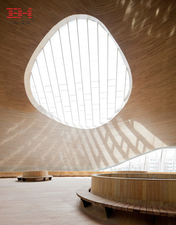 內(nèi)蒙古鄂爾多斯博物館像是空降在沙丘上的巨大時光洞窟,其內(nèi)部充滿自然的光線,正將城市廢墟轉(zhuǎn)化為充滿詩意的公共文化空間。內(nèi)部的流線是一條游動在光影中連續(xù)的線, 時而幽暗私密,時而光明壯觀,峽谷中的橋連接著兩側(cè)的展廳,人們在游覽途中會反復在穿過空中的橋上相遇。博物館外墻采用大面積的實體墻面和鋁單板幕墻以抵御鄂爾多斯嚴寒和惡劣的天氣。