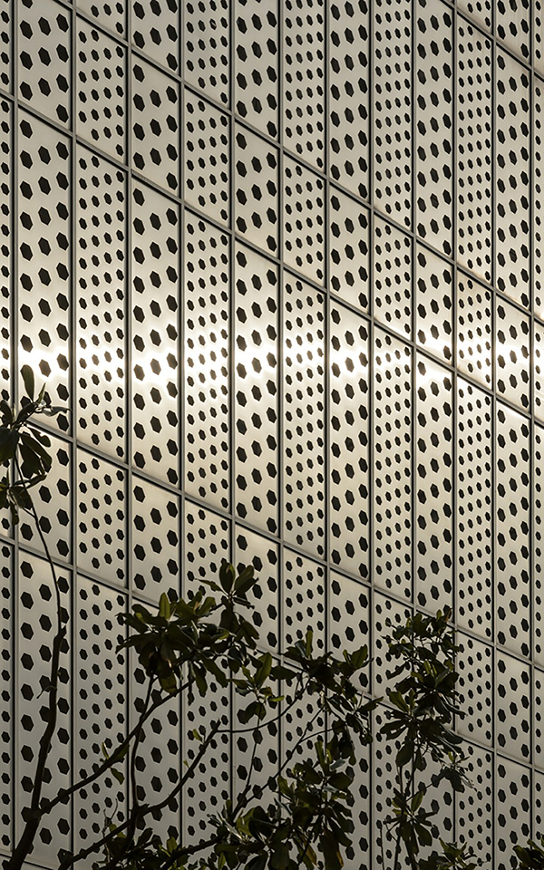 - 銅色穿孔鋁板外墻,極具金屬感的廣州得意日式鐵板料理餐廳