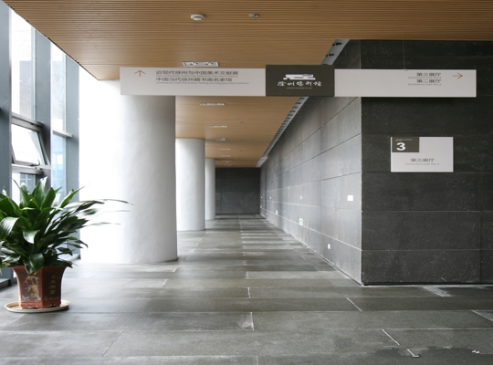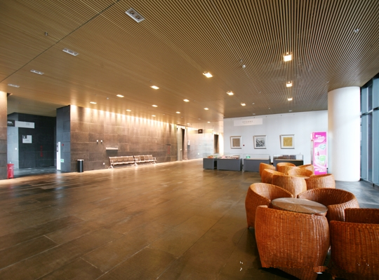 西安美術(shù)館室內(nèi)仿木紋鋁方通天花吊頂裝修案例