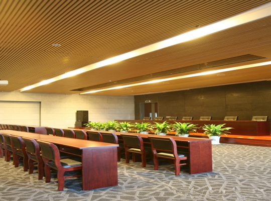 西安美術(shù)館室內(nèi)裝修天花吊頂使用的是仿木紋鋁方通,鋁方通厚度1.5mm,最長6米一根,兩根之間通過連接件連接,從而讓整個天花看起來線條更加整齊,富有層次感。也讓該博物館成為標志性建筑物。