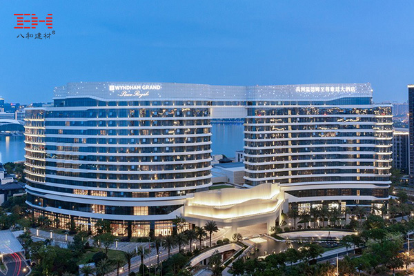禹洲溫德姆至尊豪庭大酒店位于廈門市湖里區(qū)五緣灣中心區(qū),建筑面積125393.75㎡,由21棟建筑組成,主體是兩棟高層海景樓。主題酒店大樓是玻璃幕墻加鋁單板幕墻的設(shè)置,層間鋁單板橫向排布,設(shè)計(jì)成海浪起伏的形狀,褶皺扭轉(zhuǎn)處,運(yùn)用異形鋁單板自然銜接,延綿恢弘。