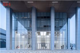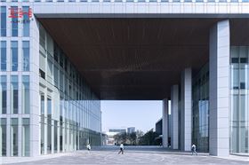 上汽通用&泛亞汽車技術中心金橋園區(qū)的綜合辦公大樓位于園區(qū)門口內(nèi),大樓中間中空設計,作為通道通向大樓后面的園區(qū)建筑。通道天花正是木紋鋁方通吊頂,順著通道方向條形排布,間布條形燈管,鋁方通有著良好的通風性和指向性。當晚燈亮起,裝飾效果愈加強烈,濃厚的現(xiàn)代科技氣息。