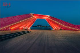 青島萬達(dá)維多利亞灣棲鳳橋形如鳳凰,橋身紅色沖孔鋁單板表現(xiàn)出了“浴火鳳凰”熱血、火烈的力量感。鋁板經(jīng)過數(shù)控機(jī)床沖孔,刻畫出均勻有規(guī)律的圖案,使得橋身更加生動(dòng)活潑。