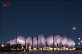 大同體育中心豐富的層次感好像云岡石窟的格局和韻律,反映了中國(guó)北方歷史上多元文化和多民族融合的和諧特色。一場(chǎng)三館的全部4棟單體建筑總計(jì)100,000平方米的鋁合金蜂窩板外墻產(chǎn)品。