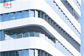 外墻部分運用了下掛式?jīng)_孔鋁板