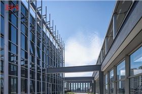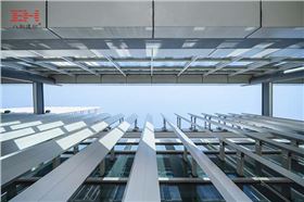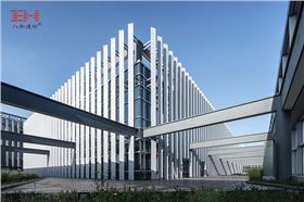 鋁板百葉格柵幕墻與玻璃幕墻虛實結(jié)合,體現(xiàn)了現(xiàn)代簡約的建筑風(fēng)格,簡約而莊重,復(fù)合了服務(wù)中心對外展示的形象。功能上,鋁板百葉有效阻擋日曬,滿足采光,為室內(nèi)人員創(chuàng)造一個現(xiàn)代、舒適宜人的辦公環(huán)境。