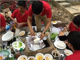 來到大夫山燒烤場所,大家分工合作,清洗食材,架爐起火。