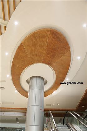 木紋鋁單板通常使用在豪華裝修的建筑上,例如:圖書(shū)館,給人一種沉穩(wěn)低調(diào)又奢華的感覺(jué)。應(yīng)用的地方也比較廣泛,只要設(shè)計(jì)師想得到,就基本上都可以實(shí)現(xiàn)安裝。例如上圖,就是使用木紋鋁單板天花吊頂,與立柱形成一個(gè)連接頗有真龍托天的感覺(jué)。