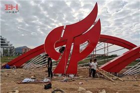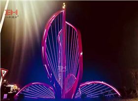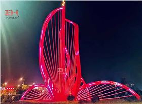 該雕塑是汕尾高新技術(shù)產(chǎn)業(yè)開發(fā)區(qū)的入口標志藝術(shù)雕塑,根據(jù)汕尾的市花大紅花進行主題創(chuàng)作,象征著熱情、勇敢、光榮與自豪,這一點與有著 “敢為天下先” 優(yōu)良傳統(tǒng)的汕尾人民的精神是追求一致的。雕塑分為左右兩個獨立體,右側(cè)主體顏色以大紅花為主,高26米,由8片花瓣組成,左側(cè)雕塑由花瓣加火炬組成,跨度40米,高7米,左右雕塑表面裝有流動、閃爍的多彩燈光效果。