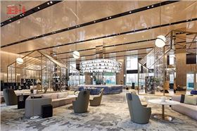 天津融創(chuàng)·星耀五洲為改造項(xiàng)目,外圍立面保留原有的柱體結(jié)構(gòu),金屬穿孔鋁單板圍合空間形成流暢的圓弧形藝術(shù)長廊。