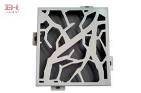 數控沖床機隨著程序的指令進行雕刻,機器自動運轉、切割、雕刻出所需要設計的圖案樣式,打磨掉平整口多余的刺邊,再經過表面噴涂處理,就得到了完美的藝術鏤空鋁單板產品。