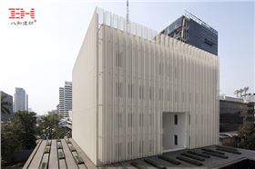 在基座之上,一個是大臣官署,另一個是學(xué)院辦公室。關(guān)于材質(zhì)方面,在基座火山石的暗調(diào)和頂上兩個體量的明調(diào)之間形成一種非常重要的對比。從安全和可達(dá)性角度為確保精確,大臣官屬體量由沖孔鋁單板覆蓋保護(hù),沖孔鋁單板提供了光影、私密性和安全感。