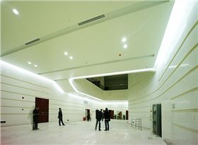 福州工人文化館內(nèi)墻天花吊頂使用了鋁蜂窩板,目的是讓這個樓面達(dá)到一個高度的平整性,同時在開闊的空間,鋁蜂窩板可以達(dá)到不錯的消音效果。