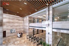 廣州白云國(guó)際機(jī)場(chǎng)綜合信息大樓之外,機(jī)場(chǎng)大道沿途建筑林木交織掩映,來(lái)到這里,木紋鋁方通天花與之一脈相承。為充滿科技?xì)庀⒌默F(xiàn)代建筑添上一筆色彩,把自然、環(huán)保、綠色的概念帶入熙熙攘攘的辦公大樓中。而入口大廳是必經(jīng)之路,無(wú)論上班下班,出入辦事都你能感受到這一絲暖意。